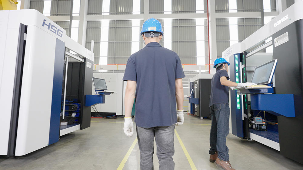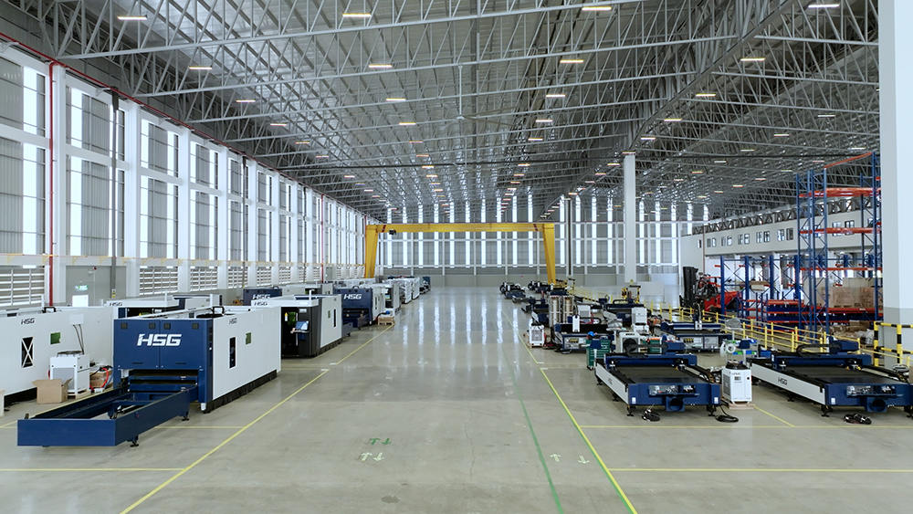 生產(chǎn)區(qū)布局40個生產(chǎn)工位,滿足40臺高端切割機同時生產(chǎn),工廠年產(chǎn)能2000臺激光加工智能裝備,目前主要生產(chǎn)宏山高端板材切割機,如C系列單平臺激光切割機,GX系列雙平臺激光切割機和GH系列高功率激光切割機,未來將不斷結(jié)合全球市場需求,研發(fā)制造更多機型。